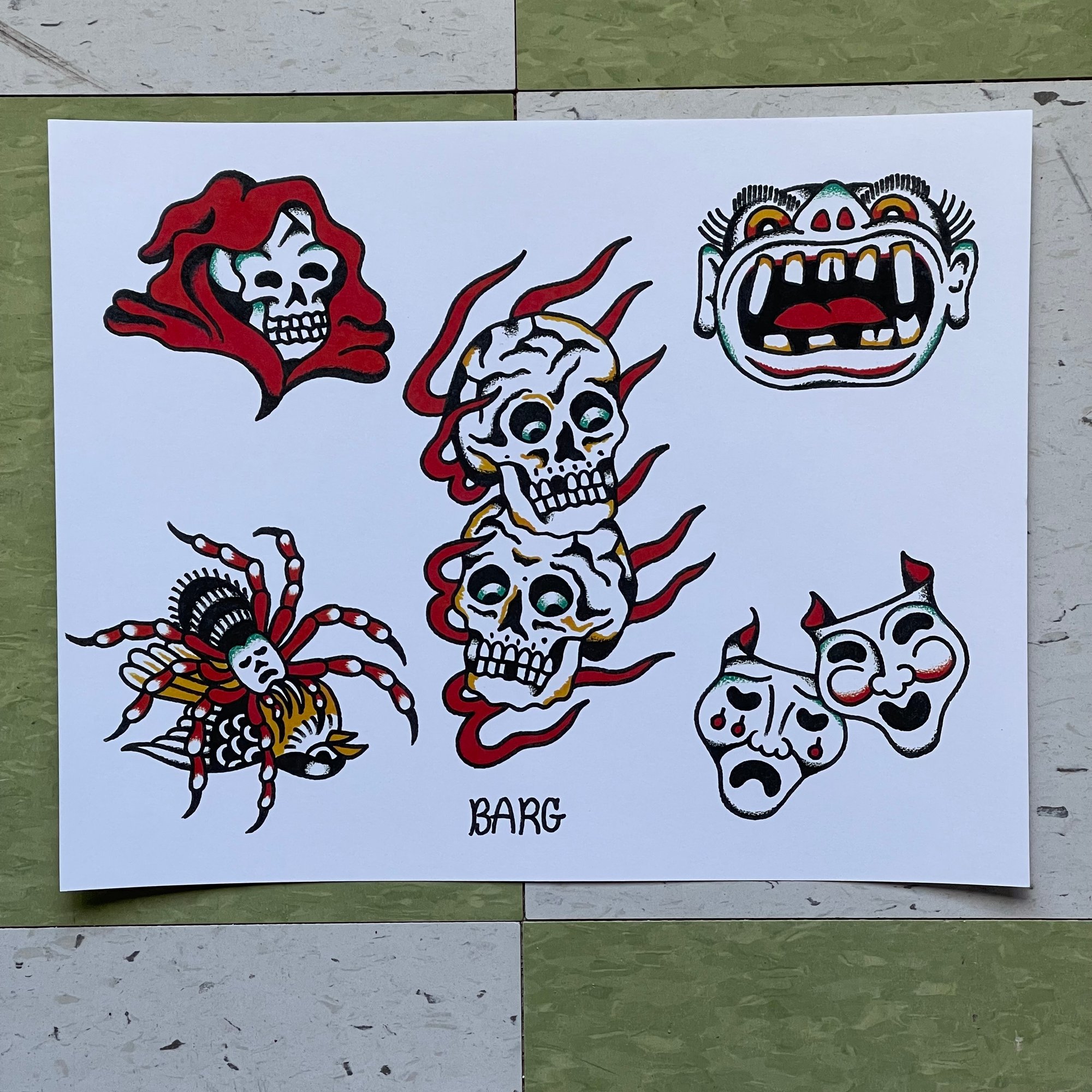 11x14 print of a hand painted flash sheet.